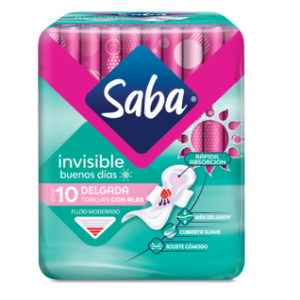 Toallas Femeninas Saba Invisible con Alas 10 pz