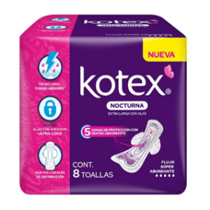 Toallas Femeninas Kotex Nocturna con Alas 8 pz
