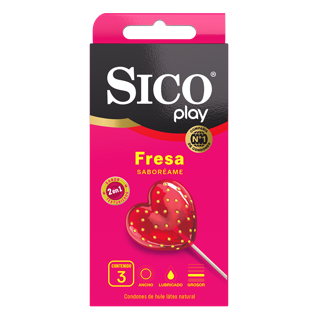 Condones Sico Play Fresa 3 pz