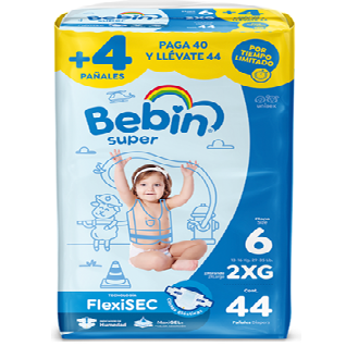 Pañal Bebin Talla 2 Extra Gde etapa 6 con 44 pz