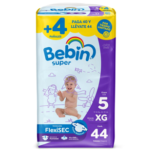 Pañal Bebin Talla Extra Gde etapa 5 con 44 pz